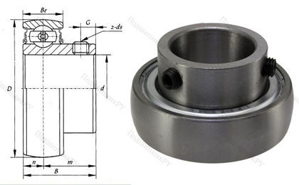 Корпусный подшипник SB208 является разновидностью однорядного шарикоподшипника исполнения Y. Имеет выпуклую наружную обойму и уширенную внутреннюю. Фиксируется на валу с использованием двух установочных винтов с шестигранной головкой. Отверстия для установки последних разнесены по окружности внутренней обоймы.